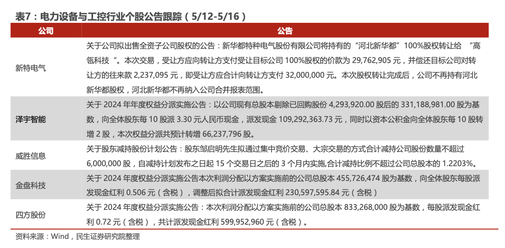 3)关注适应降本增效需要、渗透率有望提升的大兆瓦关键零部件等,关注崇德科技、盘古智能等。